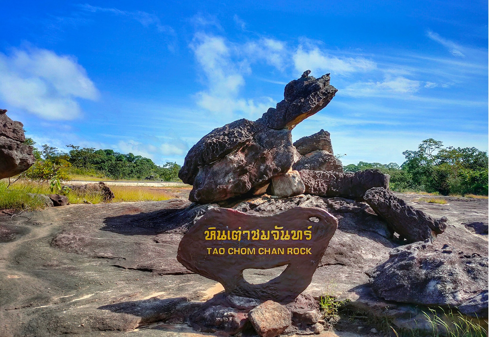 หินทรายรูปร่างคล้ายเต่าตั้งอยู่กลางลานหิน