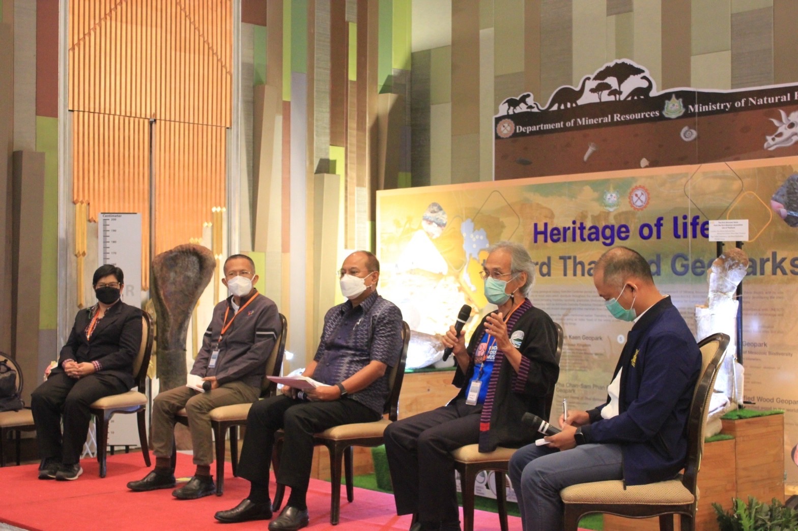 วันที่ 7 พฤศจิกายน 2565 นายกานต์ กัลป์ตินันท์ นายกองค์การบริหารส่วนจังหวัดอุบลราชธานี มอบหมายให้นายประพนธ์ โชควิวัฒนวนิช รองนายกองค์การบริหารส่วนจังหวัดอุบลราชธานี พร้อมด้วย นายจักรณรินทร์ โจมหาร ผู้อำนวยการกองทรัพยากรธรรมชาติและสิ่งแวดล้อมอบจ.อุบลราชธานี เข้าร่วมพิธีเปิด โครงการประชุมวิชาการด้านบรรพชีวินระดับนานาชาติ ครั้งที่ 6 ระหว่างวันที่ 7-11 พฤศจิกายน 2565 ณ โรงแรมพลูแมน ขอนแก่น ราชาออคิด อำเภอเมือง จังหวัดขอนแก่น โดยมีรศ.ผศ.ยุทธ แม้นพิมพ์ นักธรณีวิทยา และเจ้าหน้าที่กองทรัพยากรธรรมชาติและสิ่งแวดล้อม อบจ.อุบลราชธานี ร่วมจัดนิทรรศการ รวมทั้งให้ข้อมูลอุทยานธรณี ผาชัน สามพันโบก ต่อนายวราวุธ ศิลปอาชา รัฐมนตรีว่าการกระทรวงทรัพยากรธรรมชาติและสิ่งแวดล้อม ที่เยี่ยมชมบูทนิทรรศการอุทยานธรณีต่างๆ ในประเทศไทย ที่มาจัดแสดงในการประชุมดังกล่าว ในครั้งนี้ด้วย